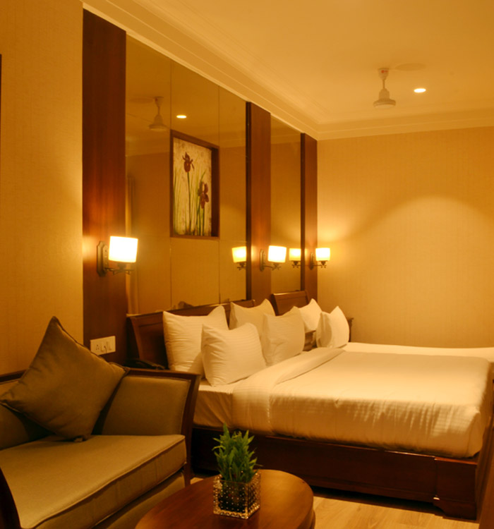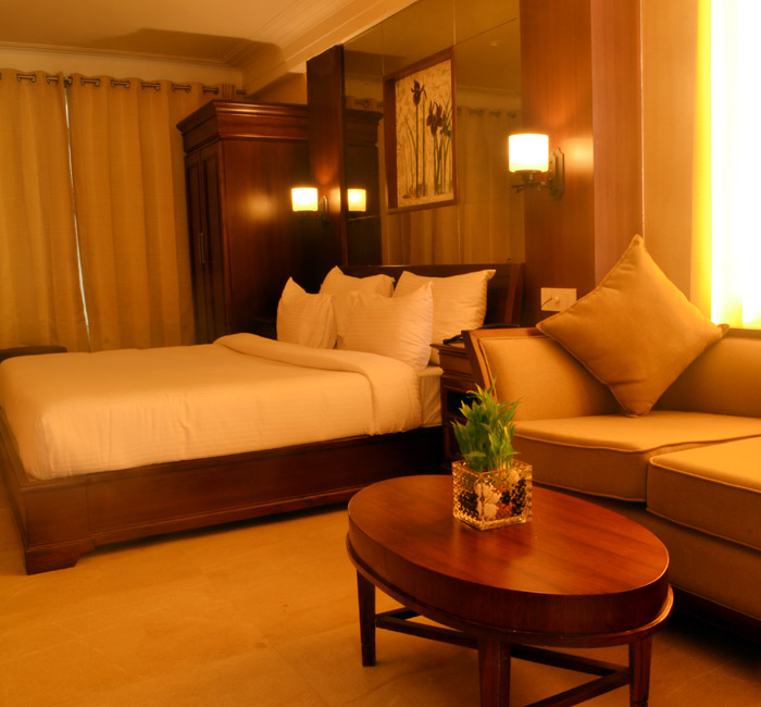 The Super Deluxe Rooms in Hotel Golden Tower are the stylist, modern and comfortably furnished and offers an enhanced level of service, comfort and convenience with two-seater couch.